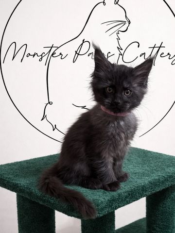 "At Monster Paws Cattery, our vision is to promote the health and well-being of Maine Coons through responsible breeding practices. We partnered together to ensure every King and Queen has their own home and space. No caging, pens, or confined spaces are utilized; therefore, all adults and kittens are free-roaming. Queen Black Truffles is my beautiful Maine Coon!"